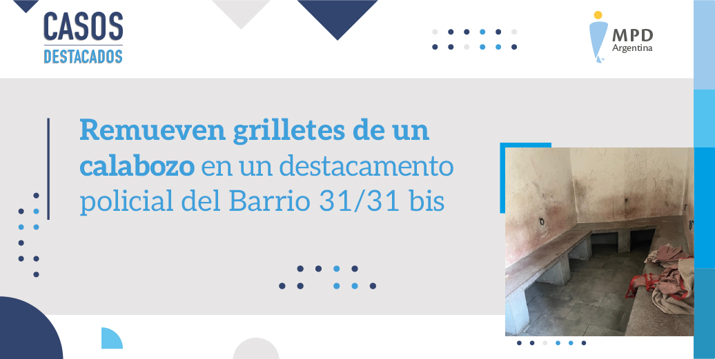La Defensoría General de la Nación (DGN) logró, a través de la interposición de un habeas corpus, que la Policía de la Ciudad de Buenos Aires remueva los grilletes que estaban empotrados en el calabozo de la División Unidad Táctica de Pacificación I, un destacamento de la Policía de la Ciudad de Buenos Aires en el Barrio 31/31 bis de Retiro. Los grilletes eran utilizados de manera permanente para mantener esposadas a las personas detenidas en el lugar, una práctica prohibida que podría ser considerada una vejación o incluso tortura, al ser sostenida en el tiempo.