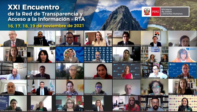 La autoridad anfitriona fue el Tribunal de Transparencia y Acceso a la Información Pública de Perú y en el acto de apertura se contó con las palabras de Aníbal Torres Vásquez (Ministro de Justicia y Derechos Humanos de Perú), Blanca Lilia Ibarra Cadena (Presidenta de la RTA), Gloria de la Fuente (Secretaria Ejecutiva de la RTA), Sonia González (Coordinadora del área de gobernanza democrática del Programa EUROsociAL+ y Rosa M. González (Consejera Regional de Comunicación e información para América Latina y el Caribe, UNESCO).
